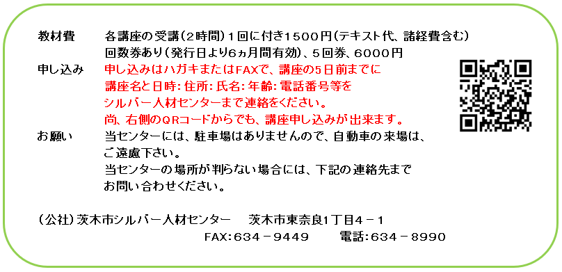 なお、3月度の講習会の申し込みは、2月の月末から、受付けを行います。